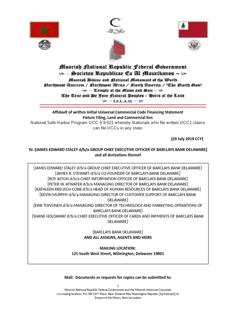 Affidavit Of Ucc1 Barclays Bank Delaware Trespass Damages