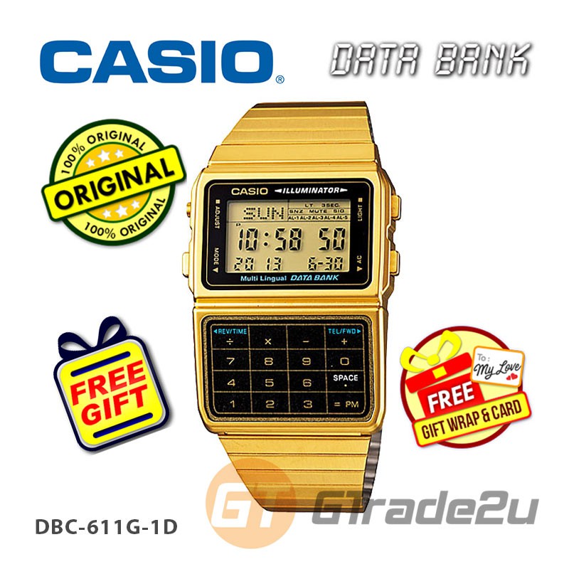 Casio Data Bank Dbc 611g 1d Digital Watch Gold Calculator Auto