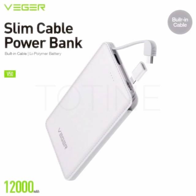 Powerbank Tipis Ringan Veger V50 12000mah Built In Kabel