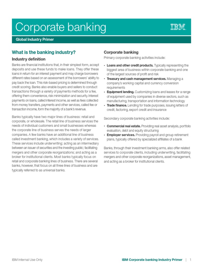 Banking Corporate Global Industry Primer 1 Banks Loans