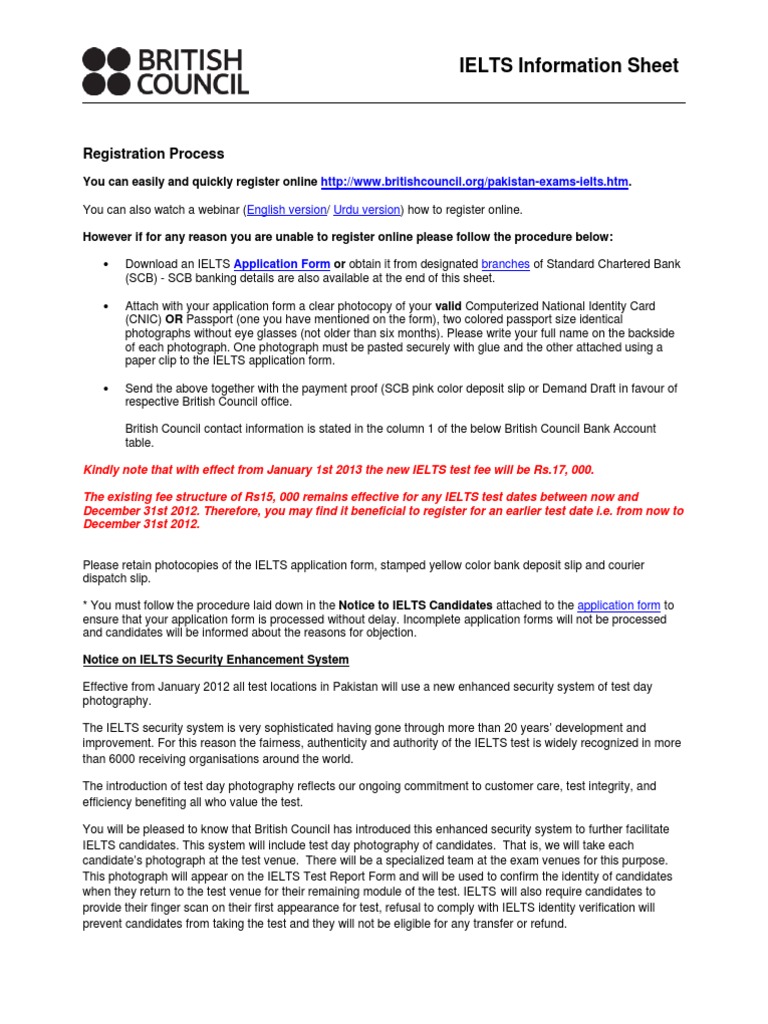 Pakistan Ielts Information Sheet Identity Document