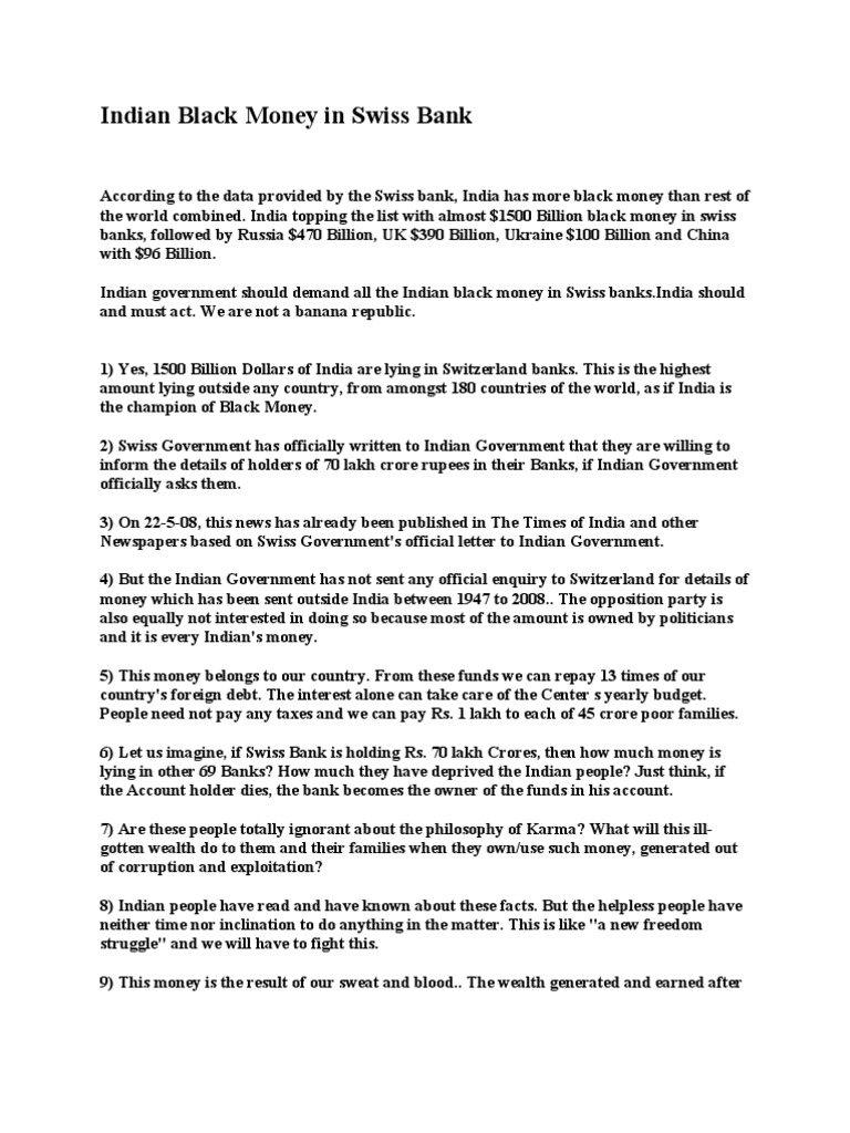 Indian Black Money In Swiss Bank Indian Black Money Politics
