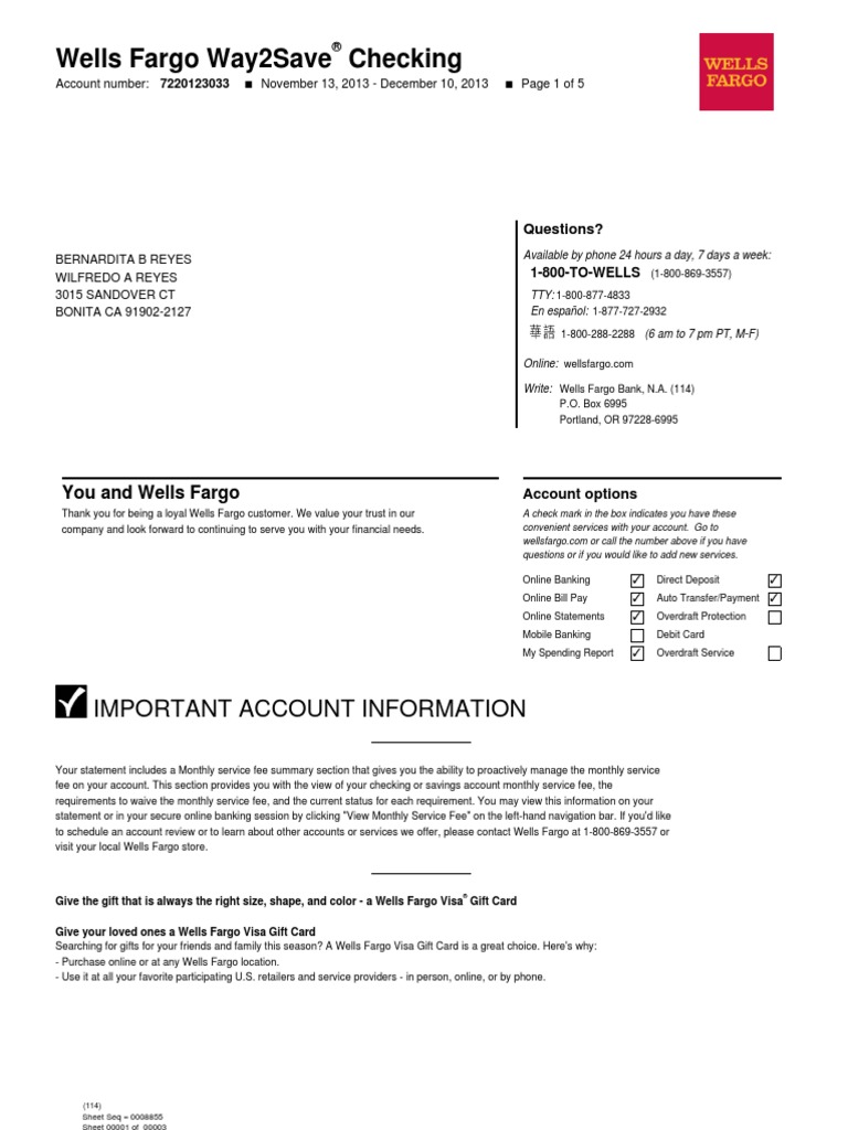 Wells Fargo Combined Statement Of Accounts